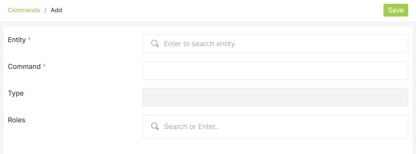To add a new command, click on the Add New button in the top right corner. Clicking on the button will open a form with following fields: