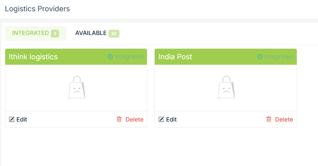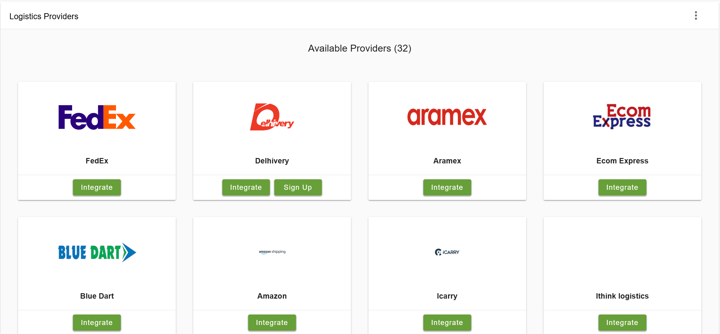 Click here to know more about how to integrate your logistic partner: Logistic providers