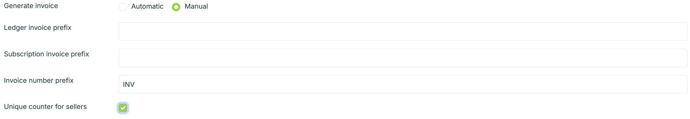 This option controls the way invoices are generated. There are two available options: