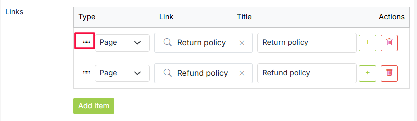 Navigation records are draggable using their drag-icon. You can rearrange the navigation records by dragging them using the hold-and-drag through the drag icon.