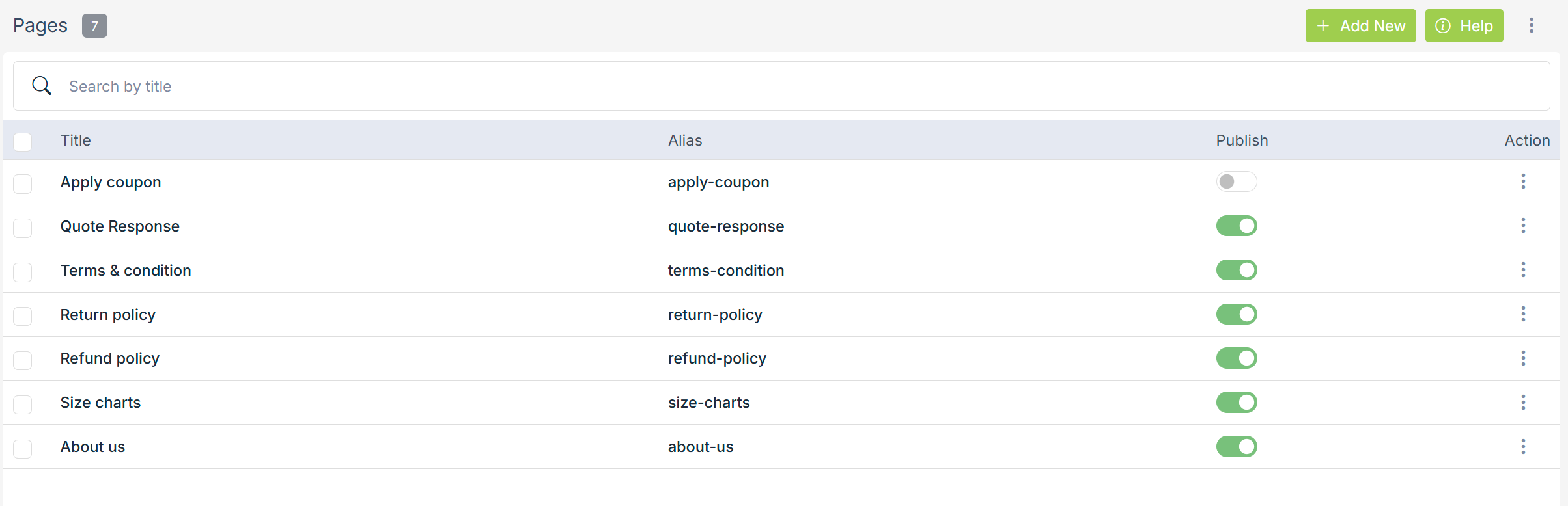 StoreHippo allows you to create custom pages for your store. The pages can be static as well as dynamic.
