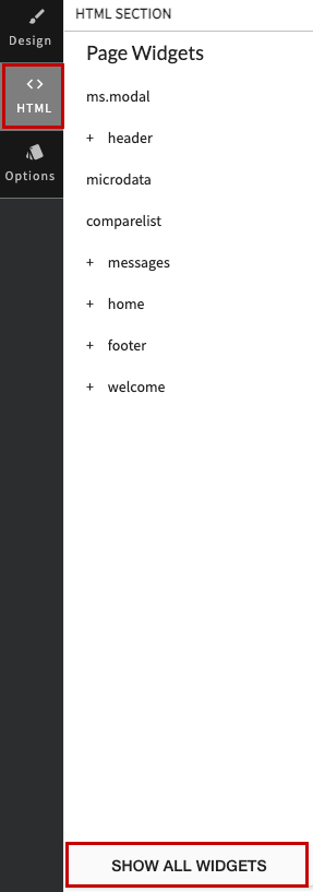 - Click on the HTML option followed by the Show All Widgets option.