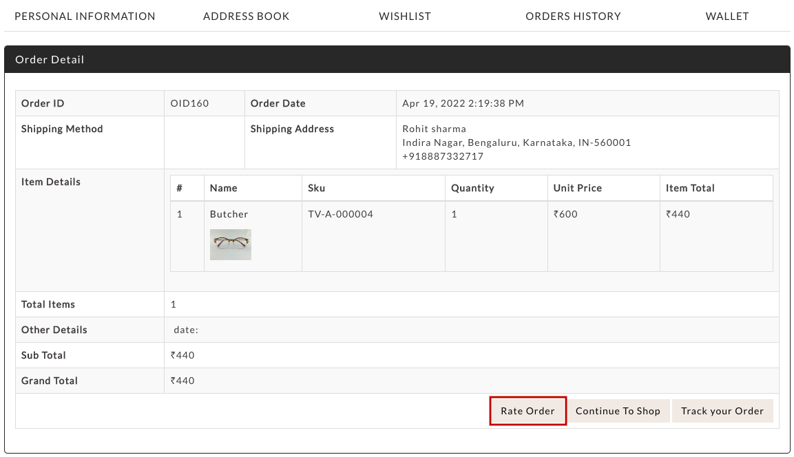 Now, the Rate Order button will appear. The customer can click on it and proceed to rate the order or seller.