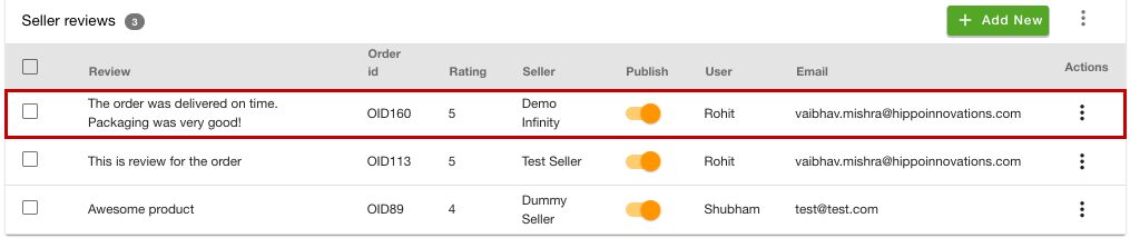 - Go to the Sellers > Seller reviews section in the StoreHippo Admin Panel.