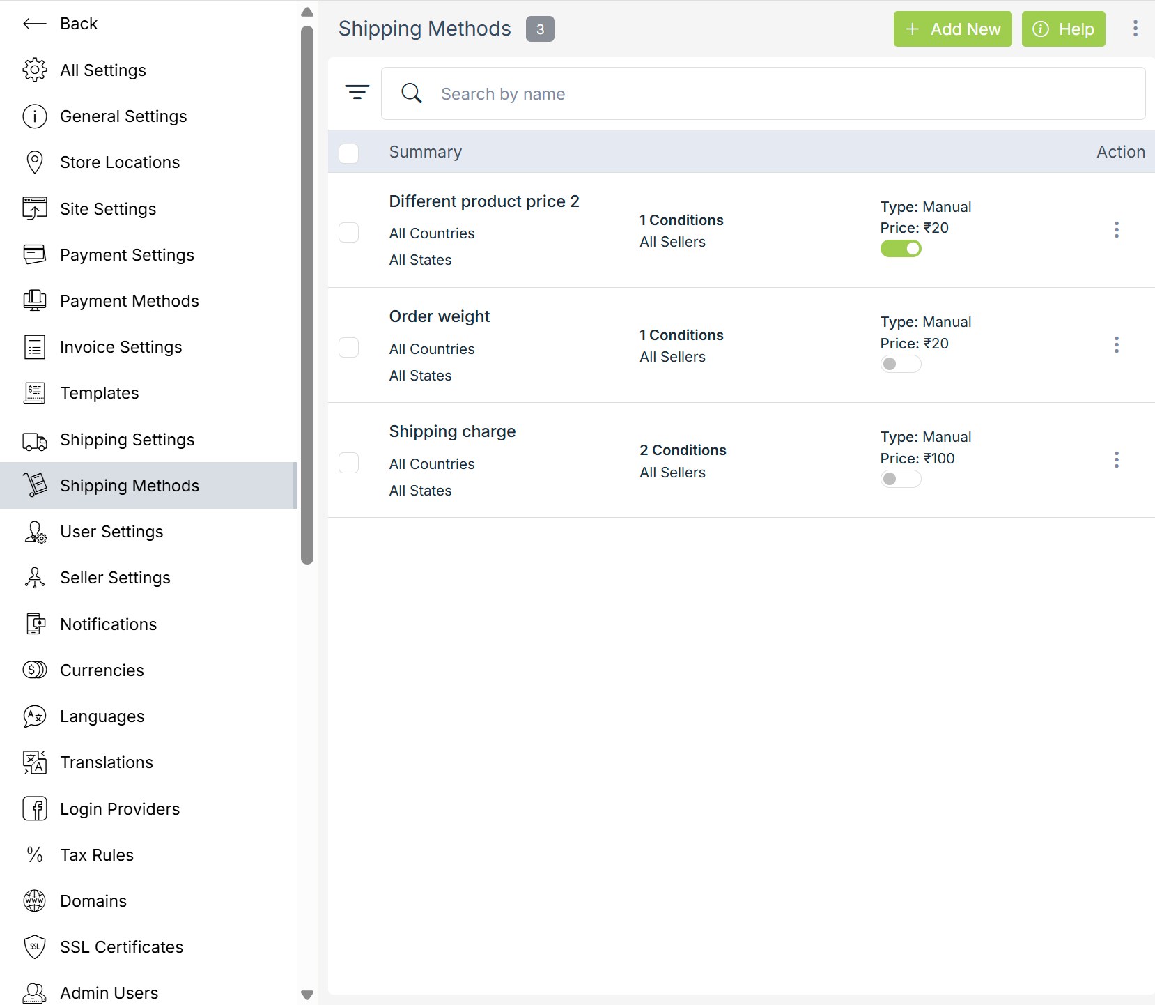 To add a new shipping method, click on the Add New button in the top right corner. Clicking on the button will open a form with following fields:
