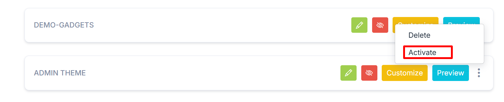 You can import various themes to your store, but only one theme can be set as default. To set the default theme, click on the ellipsis button on a theme and choose the option "Make Default Theme" from the drop-down to make that theme default for your website.